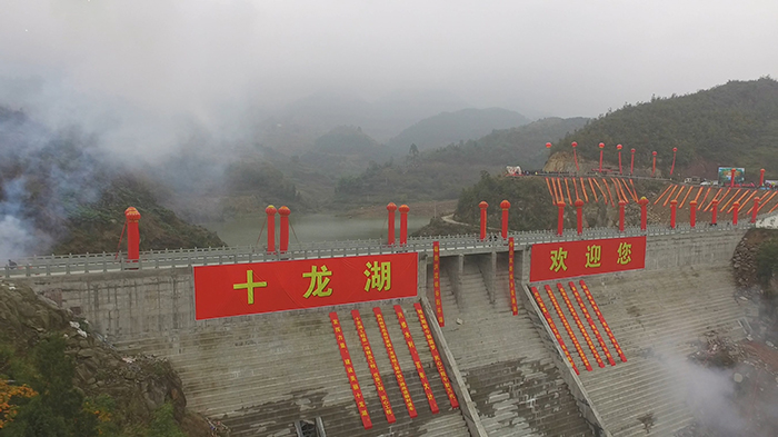 2016年12月,由大发(中国)实业全额投资8800万元的民生水利工程-十龙湖竣工。该水利工程挡水坝为浆砌条石重力大坝,坝轴线长173米,坝高50.1米,坝底部宽50米,坝顶部宽7米。水库占地面积237.02亩,设计总库容138万立方米,正常蓄水水位273米,设计灌溉面积19050亩,能解决生活用水20940人。